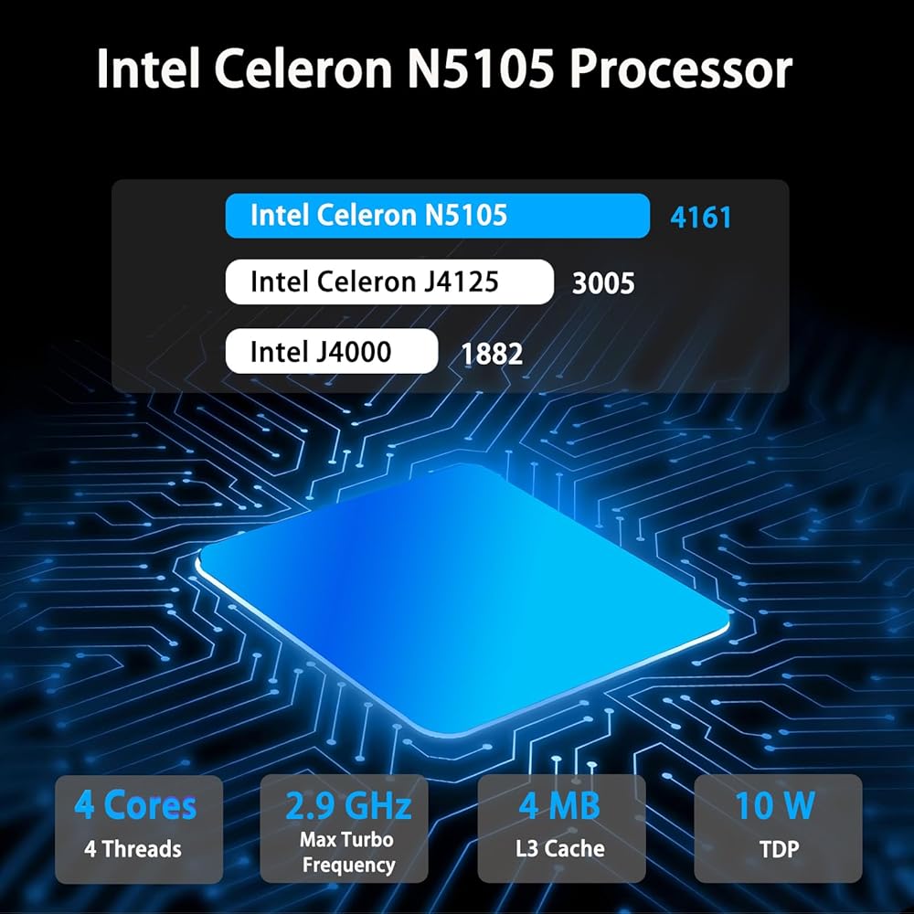 Mini PC Intel N5105, 8GB+128GB M.2 SSD Micro PC, Win11 Mini Computer, WiFi-6/BT 4.2, Compact Business Mini Desktop PC for Office, Design, Gaming & Industrial Use (Intel N5105, 8GB+128GB)