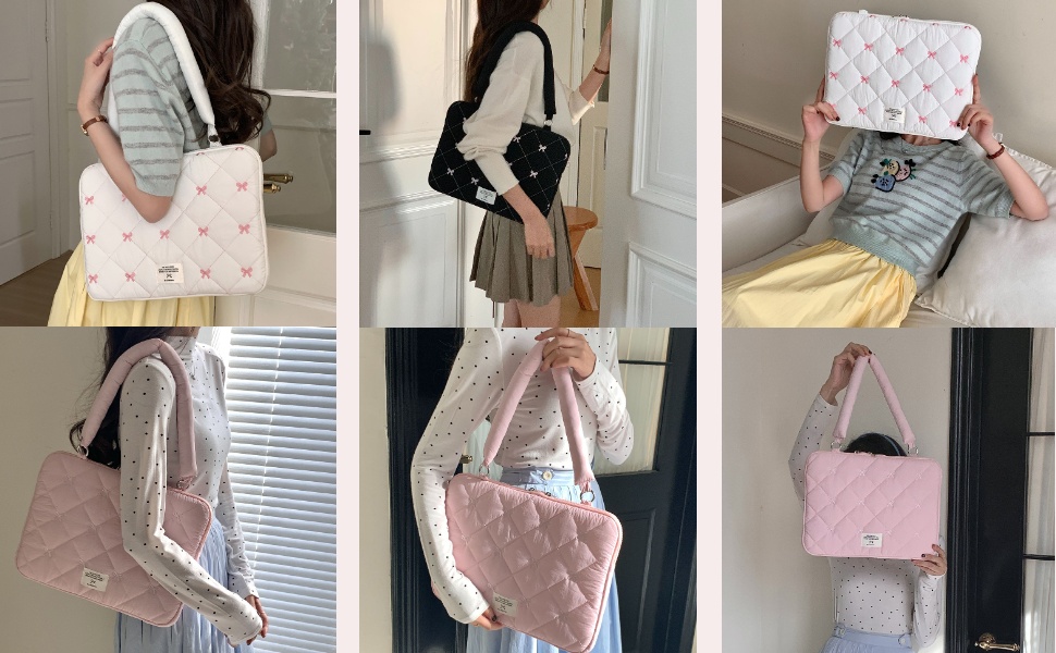 【Cute Shoulder Strap Design】Different from traditional laptop bags or briefcases, the beautiful laptop sleeve adds a soft shoulder strap, which is more convenient to carry out alone, making it a cute and fashionable computer accessory.