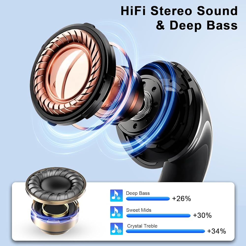 Smart Touch Controls & Broad Compatibility: Each wireless bluetooth headphones features a fingerprint-style touch panel for precise control—adjust volume, take calls, or skip tracks with a simple tap. No need to reach for your phone. Compatible with most smart devices including iPhone, Android, etc., the wireless bluetooth earphones are perfect for hands-free calling, remote working, commuting, and multitasking on the go.