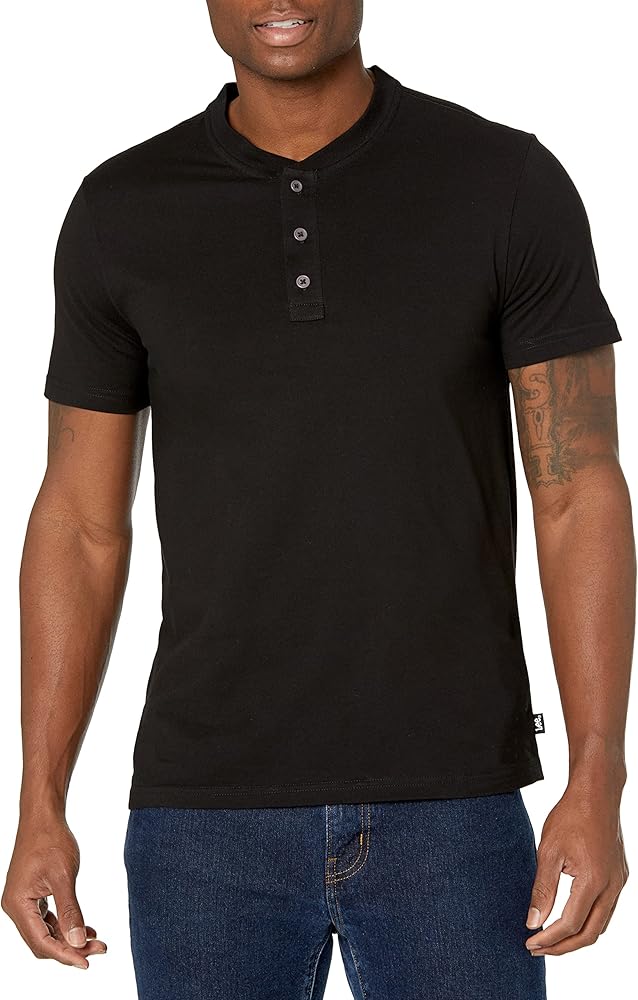 Short sleeve henley style tee with crew neck ribbed neckline and 3-button placket