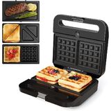 Sunvivi 3 in 1 Electric Sandwich Maker: Panini Press Grill and Waffle Iron Set, Grill and Sandwich Press with Removable Nonstick Plates, Indicator Lights & Cool Touch Handle, 800W, Black