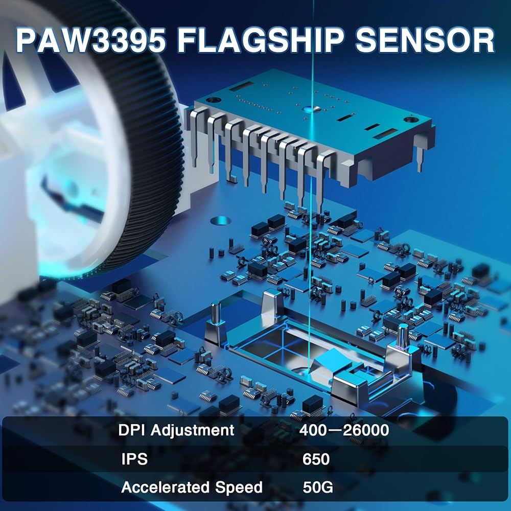 • High Performance Sensors: This gaming mouse is equipped with a powerful PAW3395 sensor, 26000 programmable DPI, 650 IPS speed, 50g acceleration, and 8000Hz polling rate, ensuring precise cursor movement, enabling gamers to perform precise operations and office workers to easily handle work