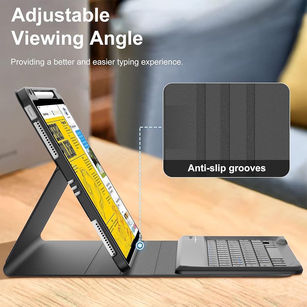 La funda de alta calidad para iPad Air de 13 pulgadas 2024 está hecha de cuero compuesto exterior vegano de primera calidad y forro antideslizante suave, una cubierta protectora para teclado le brinda a su iPad protección frontal y trasera de 360 ° contra rasguños accidentales. Y la funda para iPad Air de 13 pulgadas de Apple tiene múltiples ángulos de visión, puede elegir su ángulo óptimo para usar su iPad. Escriba, dibuje, vea y lea: si necesita hacer algo en su iPad, elija entre cuatro modos de uso versátiles para hacerlo.