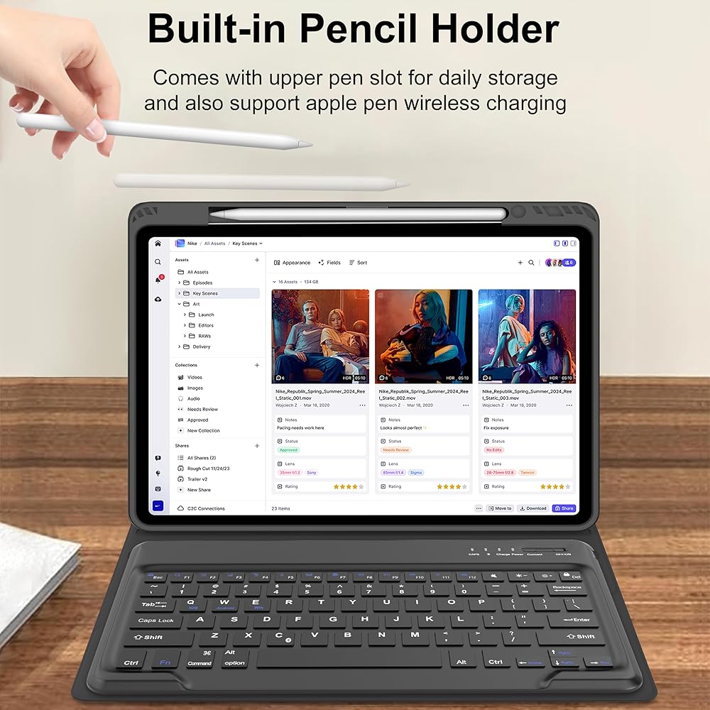 Funda para iPad Air m2 de 13 pulgadas con ranura para Apple Pen para almacenamiento diario, nunca te preocupes por perderla. La funda también admite la carga inalámbrica de Apple Pencil, sin necesidad de quitarla.