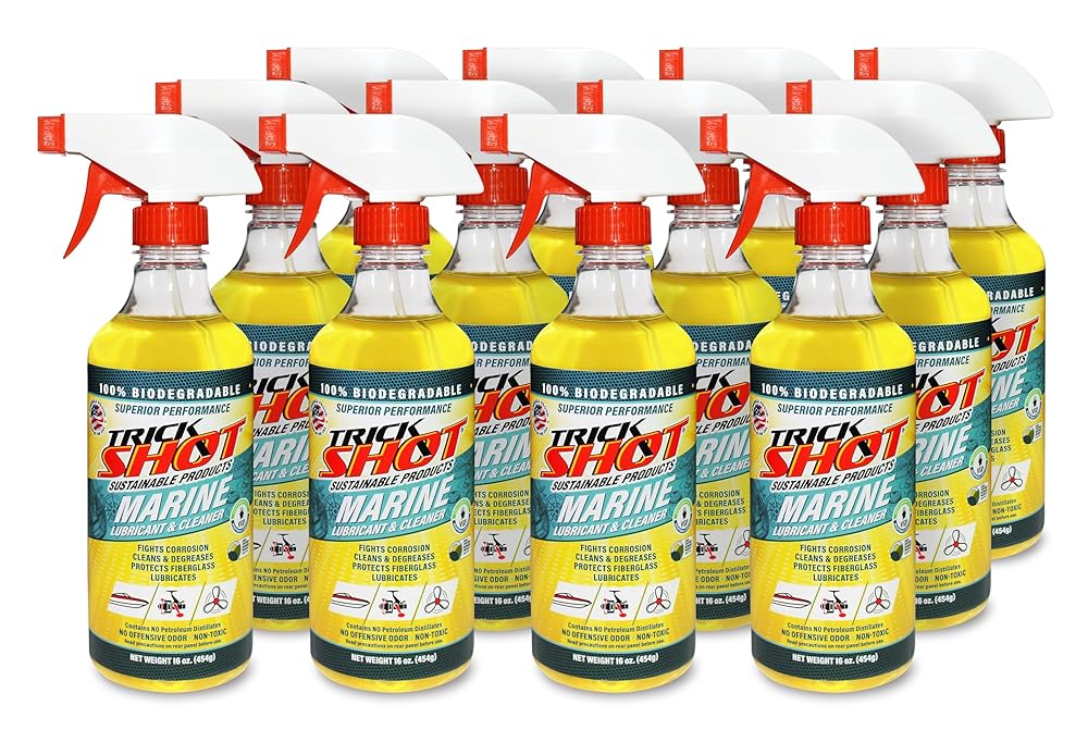 SAFE FOR THE ENVIRONMENT - Think “Green”! Unlike many marine products and industrial lubricants Trick Shot is 100% biodegradable and eco friendly. Safe for all marine environments, waterways, and most importantly their inhabitants.