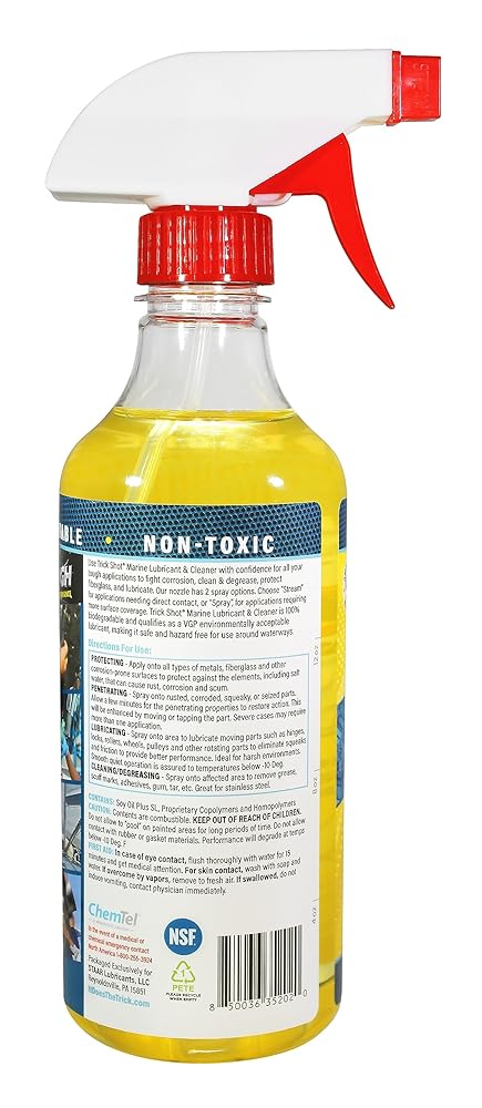 MARINE LUBRICANT - Use Trick Shot as an anti seize lubricant on all marine parts and equipment. This product contains zero petroleum distillates which gives it a low evaporation rate for longer lasting performance. Keeping your boating equipment well lubricated, protected from corrosion, and parts moving properly with less applications.